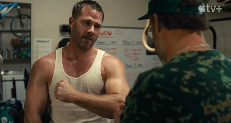 No trailer, podemos ver Luke flexione seus músculos enquanto compara seu corpo com Seth!