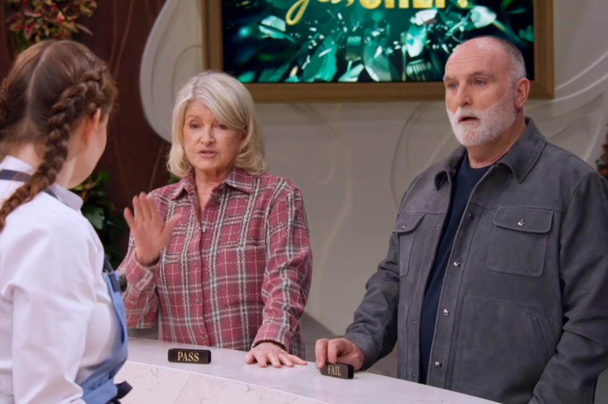 A equipe de Chebotar a aplaude quando ela começa a fazer seus cortes. “Vá, vá, você entendeu”, incentiva o chef Lee Frank. “Muito tempo, torne -os perfeitos.” Chebotar começa a suar enquanto alinha sua primeira chalota. Em seu confessionário, Chebotar fornece comentários. “Isso é tão difícil apenas porque Martha Stewart e José Andrés estão bem na sua frente!” De volta ao seu poleiro, Stewart observa Chebotar de perto. “Ela está nervosa”, diz Stewart com um brilho nos olhos. “Eu sou! Minhas mãos estão suando”, responde Chebotar com uma leve risada.